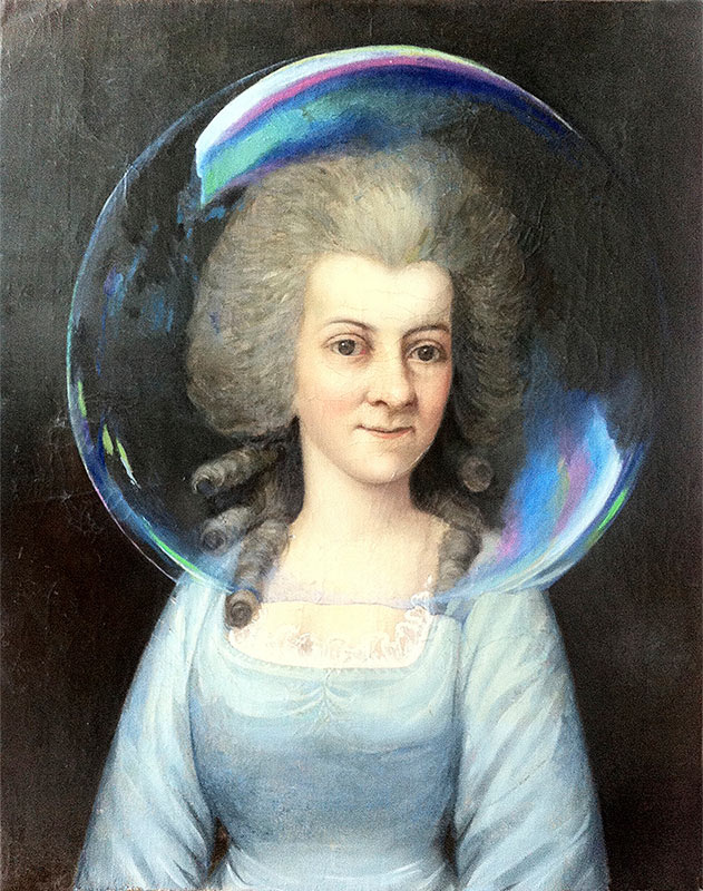Original: Artist, Date, Name of Woman unknown, oil on canvas, 69 x 55 cm Revision: Alina Kunitsyna, Mlle Sphæræ, 2013, oil on canvas, 69 x 55 cm |